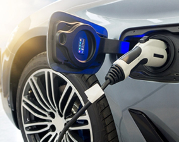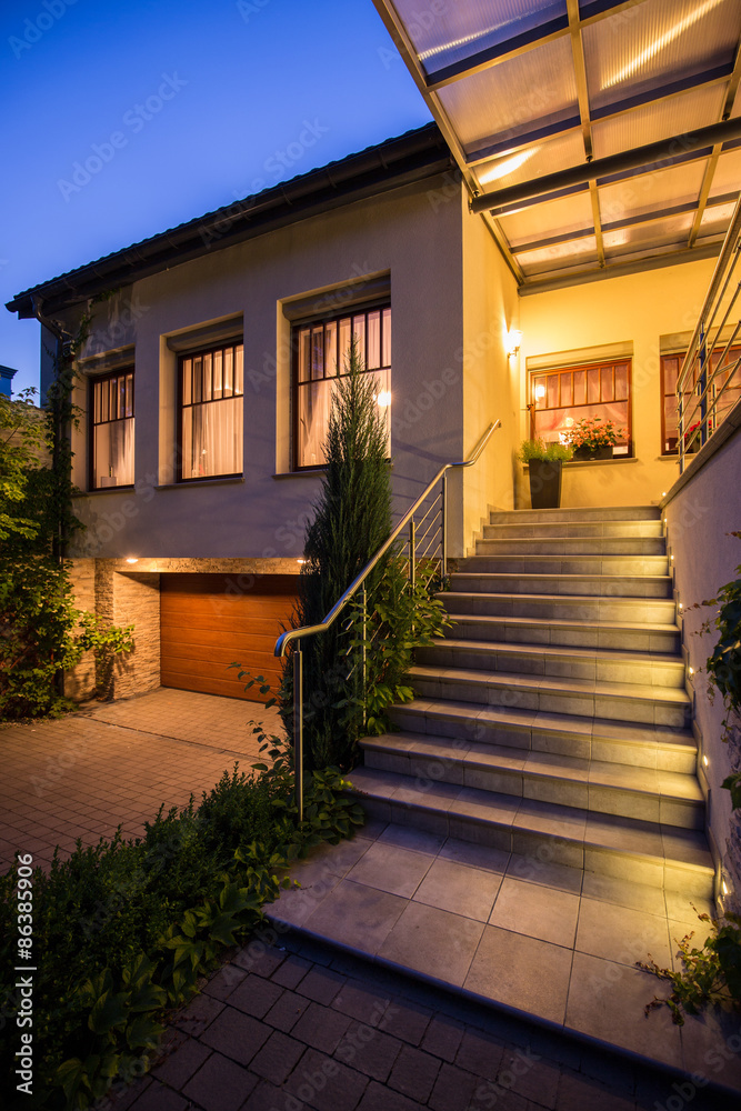 electric car suv parked in front of home modern low energy suburban house